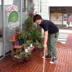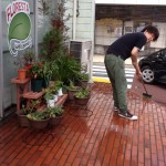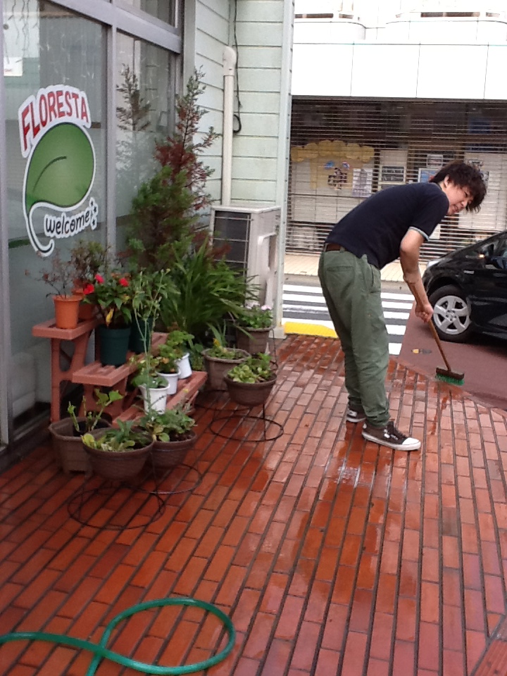 山崎が床を磨いてますが、ダイエットにいいかも(笑)