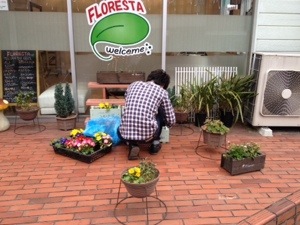 今日は営業の合間にお店の前のお花達の植え替えをしました〜!