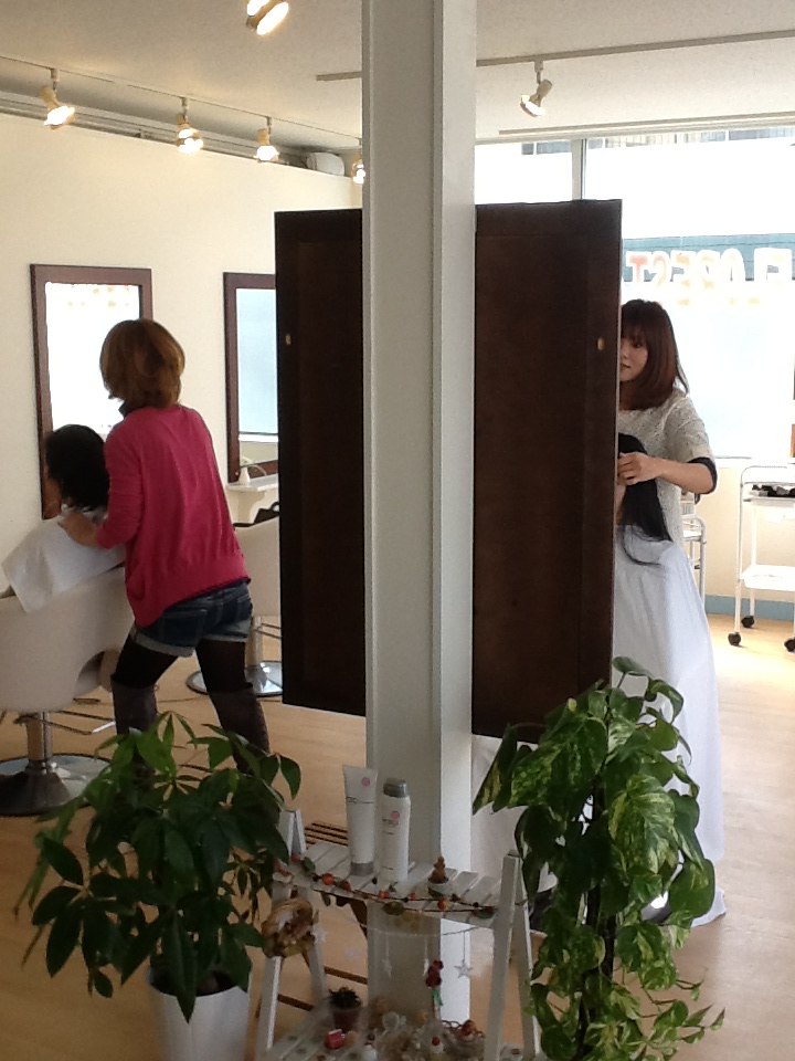 M3Dカラートリートメントのブローはちょいとコツがいるので、山崎がしっかり教えていました^^