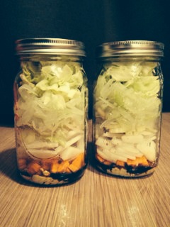 アメリカでは昔からある保存瓶なのですが、野菜を入れる時、順番があるので、そこは注意!