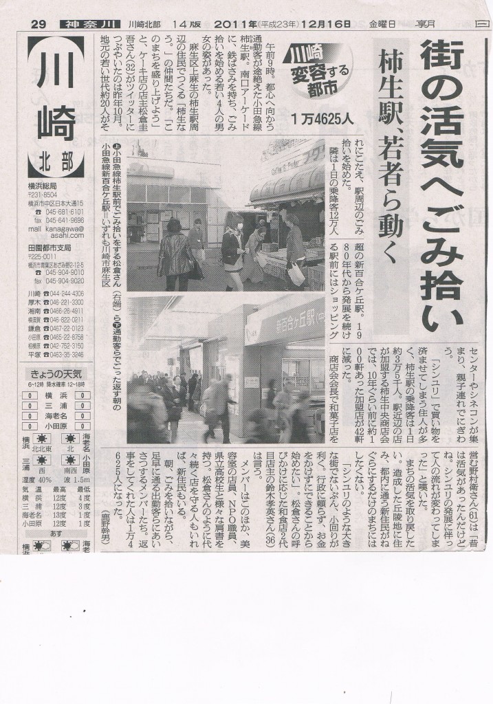 柿生なう。のメンバーや各商店のお客様、twitterやネット等で見て、ゴミ拾いに突然参加される方もいらっしゃいました。