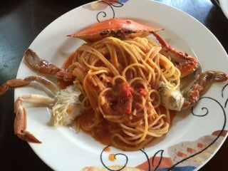 蟹のトマトクリームパスタを頼んでみました〜!( ´ ▽ ` )ノ