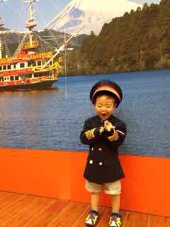 広場に大きな箱根の遊覧船が写ってるパネルがあり