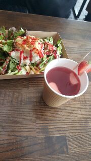 サラダにストロベリーソースがたくさんかかっていたのですが、