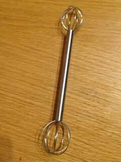 お味噌汁を作る時に使う物なんです!丸い所を味噌の中に入れてクルクルさせて汁の中に入れて混ぜ混ぜするだけで良いので片手でも簡単にお味噌をとくことができちゃうのです(^。^)