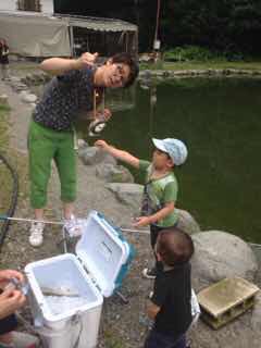 釣り堀は初めてだったのですが、思ったより魚が釣れて子供たちと大はしゃぎでした(^^)