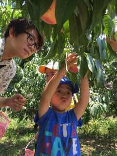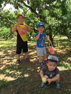 子供は甥っ子も一緒に行ってきました^ ^もも狩りは初めてだったので自分で桃を選んでもぎ取るのが楽しかったみたいです^_^