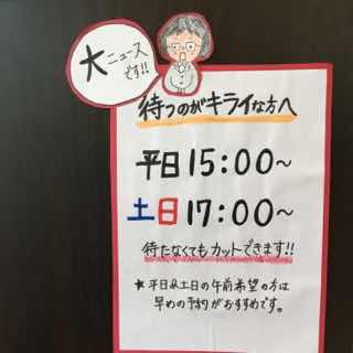 は比較的空いているのでお待ちにならずスムーズに出来ます!!平日、土日の午前中は埋まってしまう場合があるので早めにご予約をお願いします^_^