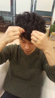 次に真ん中トップに同じくこねるように付けます!もしここでヘアワックスが足りないと感じたら少し足してあげてください!