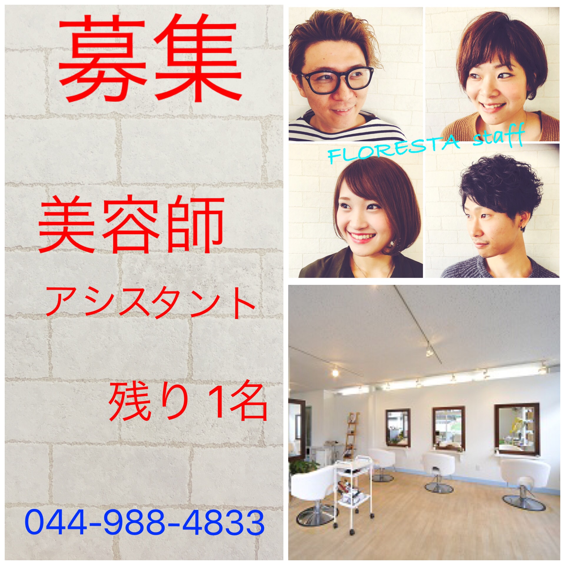 スタッフ募集 2017.02.20 ブログ Tweet Share Hatena Pocket RSS feedly Pin it アシスタントを1名募集します。 あなたの力が必要なんです! 仲間と一緒に楽しい仕事が出来ますよ(^O^) 完全週休二日制 社会保険、雇用保険完備 Tweet Share Hatena Pocket RSS feedly Pin it オススメNEWワックス 前の記事 卒入学シーズン♩ヘアセットもお任せ下さい!! 次の記事