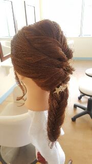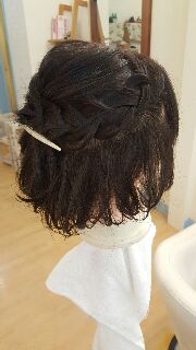 編み込みを入れて下の髪の毛はゆるく巻きました!