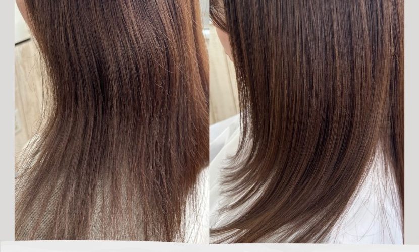いかがでしょうか!髪に足りない水分やたんぱく質をしっかり入れさせていただいたのでつやつや艶子ちゃんになりました。